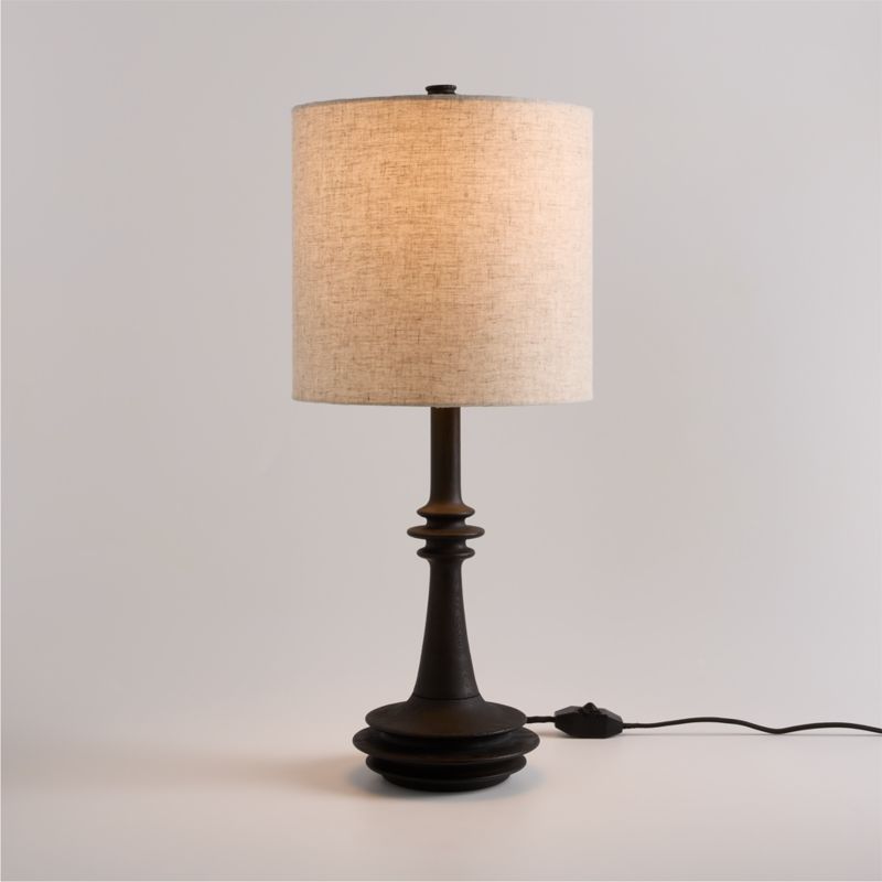 Noir Turned Wood Floor Lamp with Fabric Shade