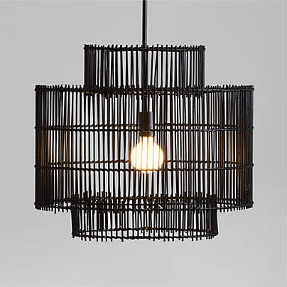 Inspired by vintage bird cages, this striking table lamp constructs an airy enclosure of natural wicker. A breezy weave of rattan surrounds the base, rod and an upright socket in a stack of alternating cylinders that plays on traditional lamp shapes. We love how the table lamp's unconventional silhouette jazzes up a side table or credenza and how the open weave casts intriguing shadows night or day.