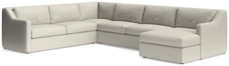 Our Notch collection creates a casually comfortable sectional with clean lines and an open attitude. Comprising a right-arm chaise, corner, armless sofa and left-arm sofa, the U-shaped sectional provides a casually comfortable sit that's slightly upright with generous seat and back cushions. A great choice for active households, Notch is tailored in a family-friendly fabric with lots of touchable texture.