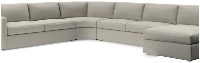 Our Notch collection creates a casually comfortable sectional with clean lines and an open attitude. Comprising a right-arm chaise, wedge, armless sofa and left-arm sofa, the U-shaped sectional provides a casually comfortable sit that's slightly upright with generous seat and back cushions. A great choice for active households, Notch is tailored in a family-friendly fabric with lots of touchable texture.