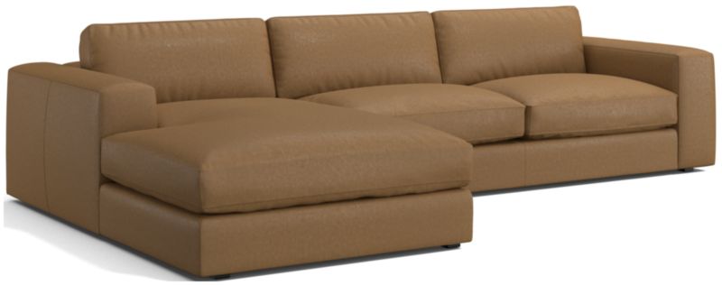 Oceanside Deep Low 2-Piece Leather Sectional Sofa with Chaise Lounge