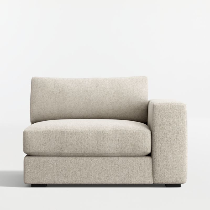 The modern ease of coastal living, no matter where you live. Our Oceanside sectional brings laid-back style to the living room with its clean lines, soft-yet-supportive cushions and ultra-wide arms for perching your drink or device. Scaled with an extra-deep and low seat, the right-arm chair is great for anyone who loves laid-back lounging and a low, modern look. And as your go-to place for lounging, you'll love Oceanside in our durable, family-friendly performance fabric. Combine the right-arm chair with other components to form an Oceanside sectional that's perfect for your space.