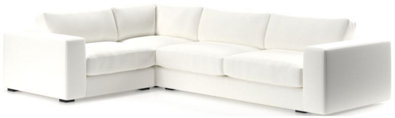 The modern ease of coastal living, no matter where you live. Oceanside brings laid-back style to the living room with its clean lines, soft-yet-supportive cushions and ultra-wide arms for perching your drink or device. Scaled with a regular seat depth and low seats, the three-piece sectional—left-arm chair, corner and right-arm sofas—is great for anyone who likes to sit a little more upright, yet loves the low and modern look. And as your go-to place for lounging, you'll love Oceanside in our durable, family-friendly performance fabric.