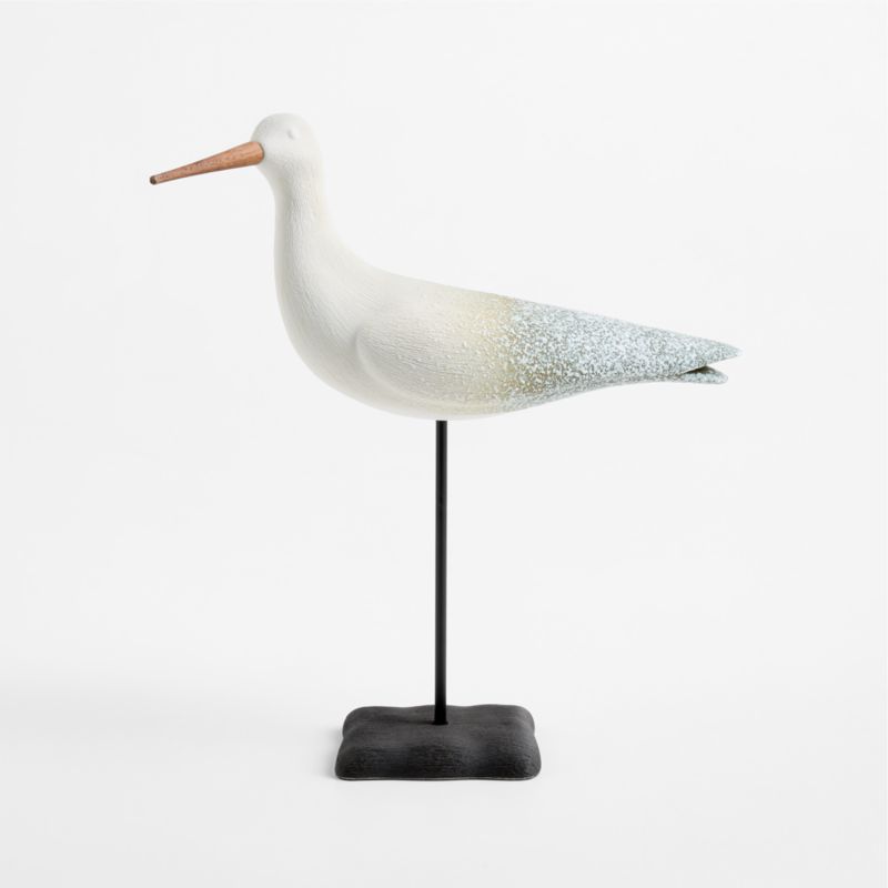 Sleek and abstract yet full of personality, our bird sculpture charms on a bookcase, fireplace mantel or entryway console. Talented artisans craft the porcelain bird by hand, molding the streamlined curves, texturing with slender scratches and coating it with a cream glaze that flows into olive green sponged with white. A natural wood beak enhances the warm, textural look. Elevated upon an organic black stand, our exclusive ombre bird brings seashore style home.