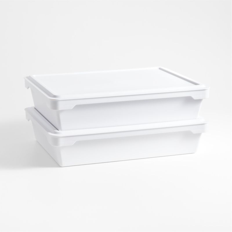 Prep pizzas like a pro with this helpful set of two dough boxes. The white boxes prevent dough from drying out as it proofs and accommodate up to six balls of dough each—ideal for 12-inch pizzas. Equipped with easy-grip lids, the boxes conveniently stack during proofing, clean up easily in the dishwasher and nest compactly between pizza parties.