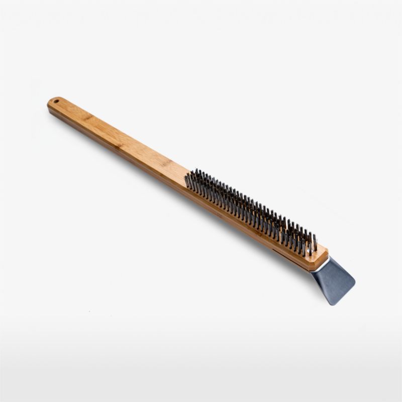 Keep your Ooni oven in pizza-ready shape with this handy brush. Fitted with a comfortable bamboo handle, the brush features durable stainless steel bristles that sweeps away excess flour. Flip the brush over to scrape the oven clean of fallen cheese and other ingredients. The slim tool cleans your Ooni pizza oven (sold separately) with ease so you're always prepared for the next pizza party.