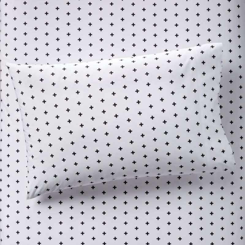 With an easy-to-coordinate black and white design, this organic black plus sign sheet set is ready to feel at home in any kids' room. The array of simple plus signs create a versatile pattern that works for a boy's room, girl's room or a shared bedroom. Plus, the 100% organic cotton construction makes this sheet set as comfy as it is lovable.