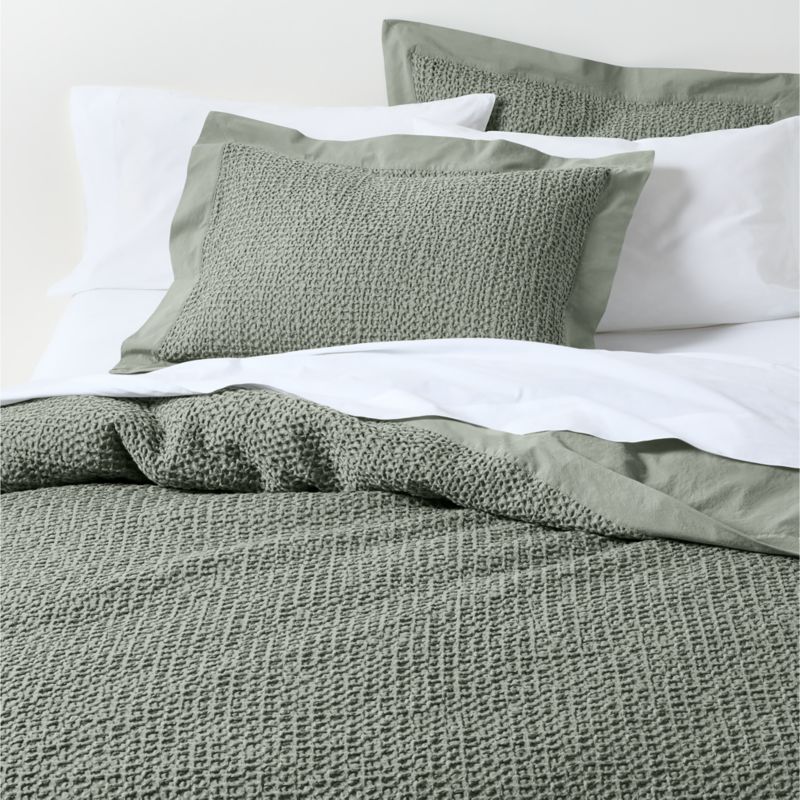 • View Organic Cotton Waffle Shadow Sage Green King Duvet Cover - image 5 of 9