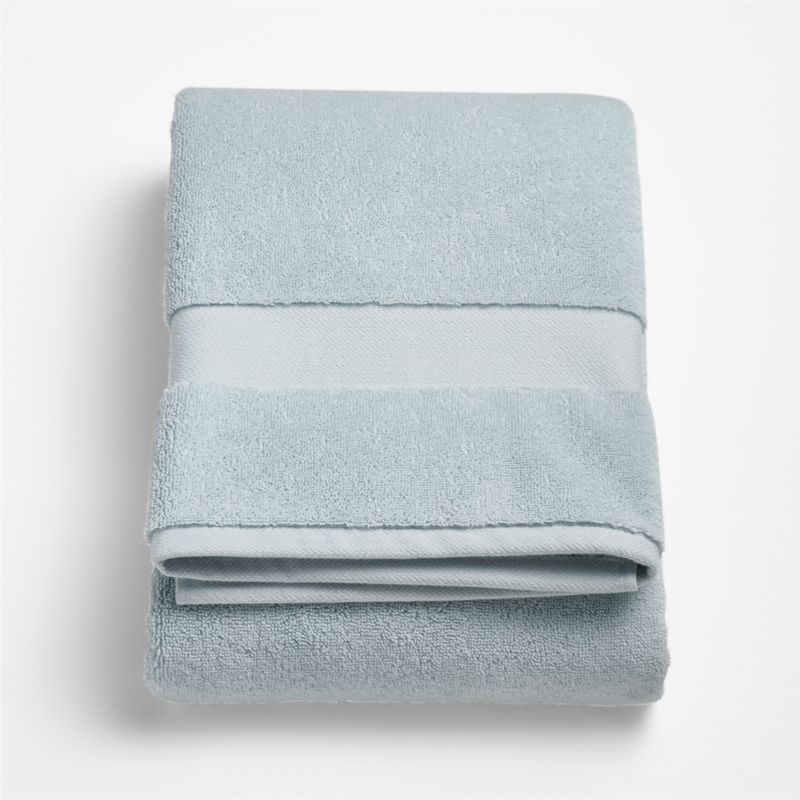 Our luxurious towels are made with Turkish organic cotton yarn to be extremely plush and incredibly soft. Made of double-ply threads to ensure strength and durability, the pale blue bath towel is woven with a looped rather than tight construction to dry quickly. Washing will make this exceptional textile even more absorbent and soft.