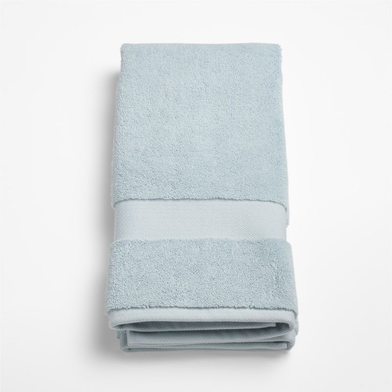 Our luxurious towels are made with Turkish organic cotton yarn to be extremely plush and incredibly soft. Made of double-ply threads to ensure strength and durability, the pale blue hand towel is woven with a looped rather than tight construction to dry quickly. Washing will make this exceptional textile even more absorbent and soft.