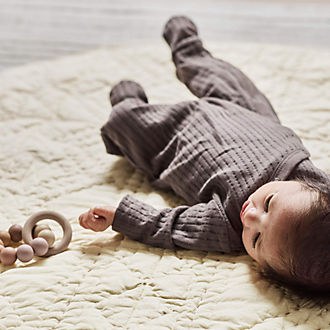 Prefer your patio furniture to have a natural look? Consider a set of unfinished patio furniture made of weather-resistant teak wood. Then, allow it to weather naturally to a mild grey, or add a teak protector to maintain the wood's warm tone. A set featuring a sofa, chairs and a dining table coordinates on the deck or beneath a pergola. Look for Sunbrella cushions in the same bright hue or pattern for a uniform feel. Or, shop individual pieces for your balcony, front steps or lanai. If you're a frequent warm-weather host, consider outdoor kitchen furniture like a combination bar and workstation or a table drop leaf table for extra surface area. Ottomans also provide for versatile use—acting alternatively as foot rests or additional seating. Complete your outdoor entertaining space with melamine dinnerware, outdoor lighting and planters to showcase fresh blooms.