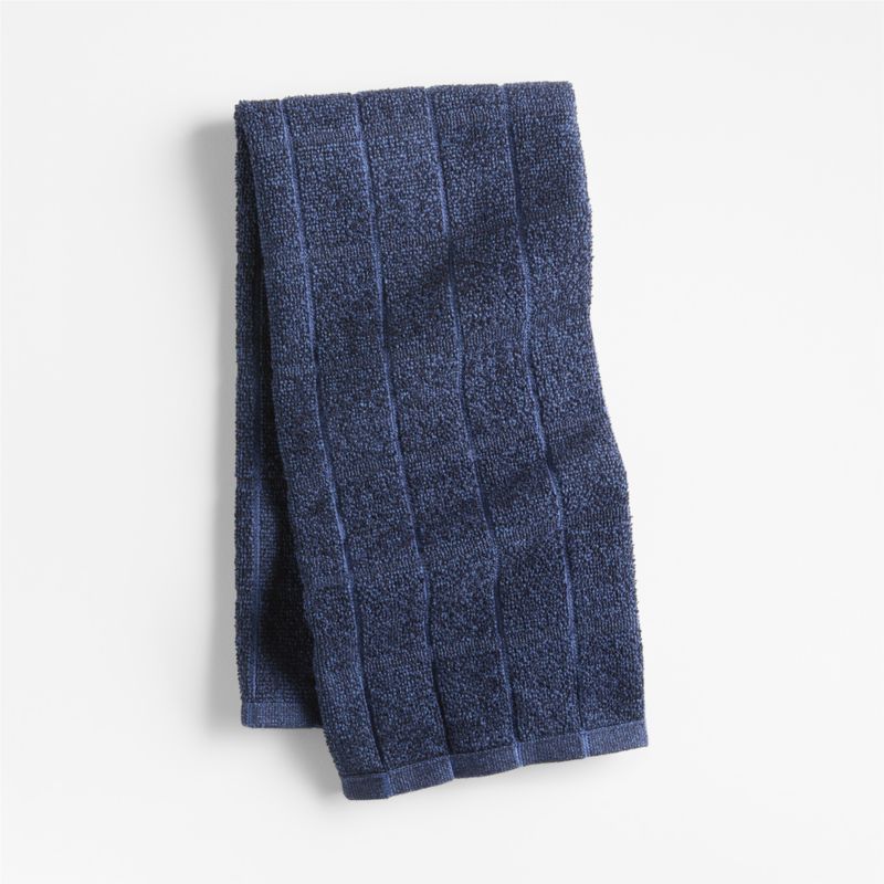 This oversized kitchen towel makes us wonder how we ever lived without it. Featuring loops on one side and microfiber loops on the other, the supersoft utility towel makes short work of drying pots, pans and large serving pieces. The supersoft cotton and recycled polyester blend is ultra-absorbent, drying quickly so it's ready for the next task. Woven with a monochromatic windowpane plaid in deep blue, this indigo dish towel is a new kitchen must-have.