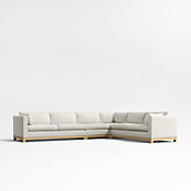 Long, low and made for lounging, our Pacific sectional sofa complements contemporary living rooms with its easy, breezy style. Sustainably sourced wood with a light finish anchors the combination of left-arm bench sofa and right-arm chaise with square legs and a full rail. Along with pillowy back cushions and supportive bolsters, the bull-nosed seats ensure a comfortable stay with medium-density, not-too-deep cushions. You'll love it upholstered in Olef, a 100% recycled fabric with subtle textured slub and marled yarns.