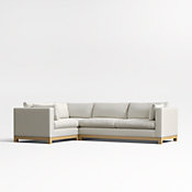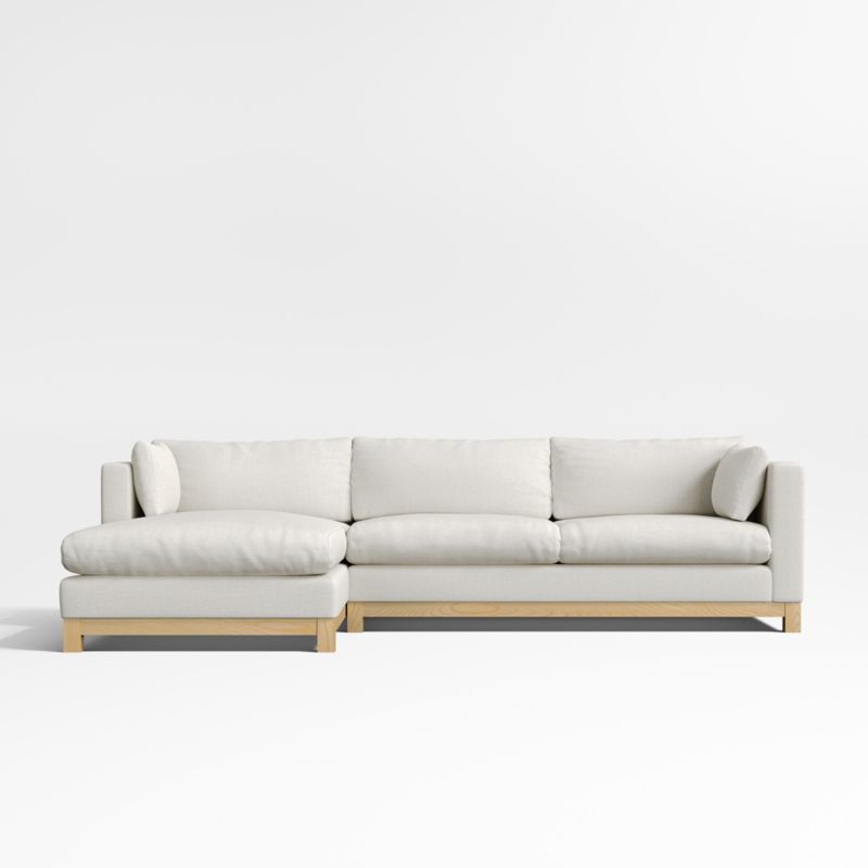 Long, low and made for lounging, our Pacific sectional complements contemporary living rooms with its easy, breezy style. Sustainably sourced wood with a light finish anchors the combination of a left-arm chaise and right-arm sofa with square legs and a full rail. Along with pillowy back cushions and supportive bolsters, the bull-nosed seat ensures a comfortable stay with medium-density, not-too-deep cushions. You'll love the sectional sofa upholstered in Olef, a 100% recycled fabric with subtle textured slub and marled yarns.
