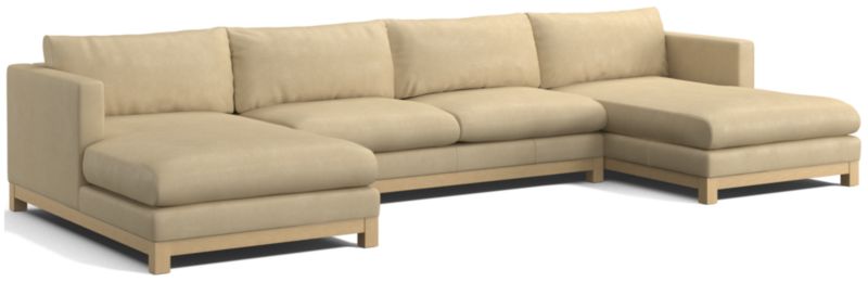 • View Pacific Wood Base 3-Piece U-Shaped Leather Sectional Sofa with Double Chaise Lounge - image 2 of 6