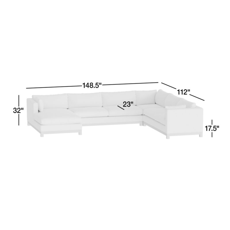 Long, low and made for lounging, our Pacific sectional complements contemporary living rooms with its easy, breezy style. Sustainably sourced wood with a light finish anchors the four-piece sectional—a corner, armless sofa, left-arm chaise and right-arm sofa—with square legs and a full rail. Along with pillowy back cushions and supportive bolsters, the bull-nosed seat ensures a comfortable stay with medium-density, not-too-deep cushions. You'll love the sectional sofa upholstered in Olef, a 100% recycled fabric with subtle textured slub and marled yarns.