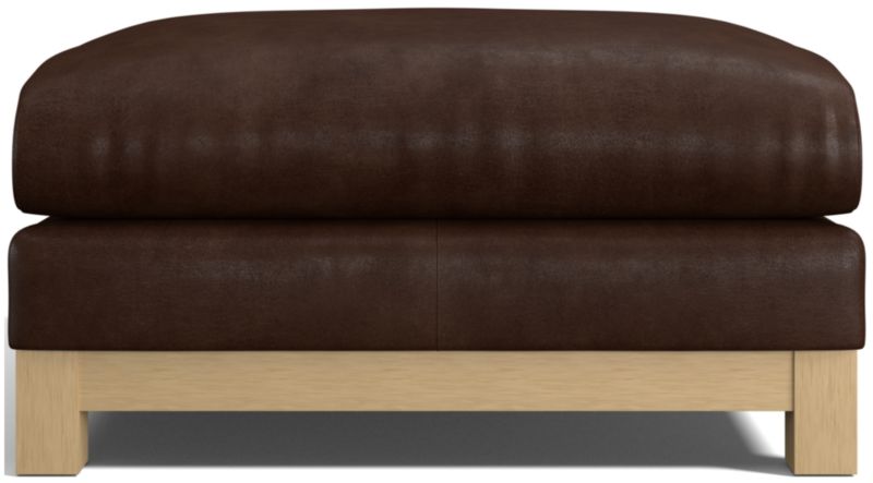 Our Pacific ottoman complements contemporary living rooms with its easy, breezy style and the luxury of full-grain leather. Sustainably sourced wood with a light finish anchors the ottoman with square legs and a full rail. The bull-nosed seat with a medium-density cushion makes for a relaxing footrest or extra perch. Rich and rustic leather upholstery takes Pacific to the next level of indulgence, offering a velvety hand, burnished appearance and beautiful patina over time.