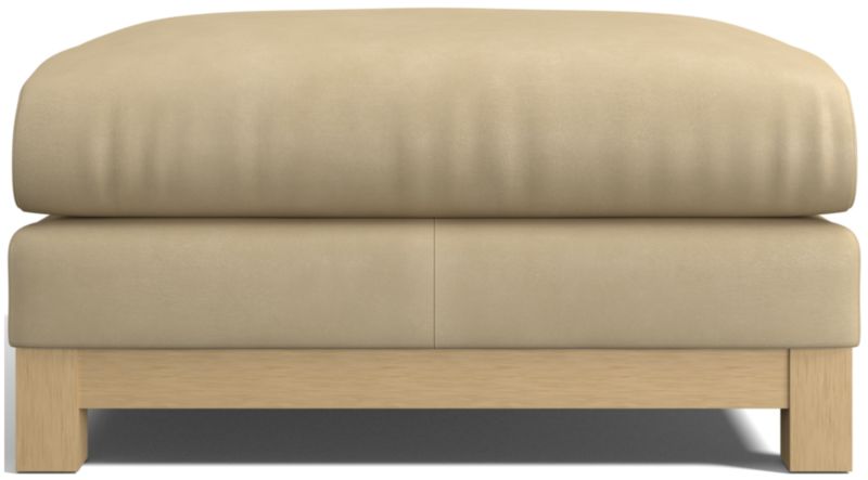 Our Pacific ottoman complements contemporary living rooms with its easy, breezy style and the luxury of full-grain leather. Sustainably sourced wood with a light finish anchors the ottoman with square legs and a full rail. The bull-nosed seat with a medium-density cushion makes for a relaxing footrest or extra perch. Rich and rustic leather upholstery takes Pacific to the next level of indulgence, offering a velvety hand, burnished appearance and beautiful patina over time.