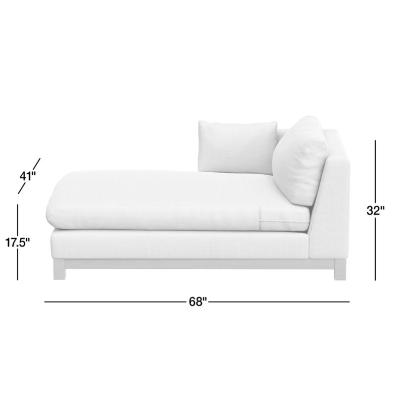 Long, low and made for lounging, our Pacific sectional collection complements contemporary living rooms with its easy, breezy style. Sustainably sourced wood with a light finish anchors the left-arm chaise with square legs and a full rail. Along with a pillowy back cushion and a supportive bolster, the bull-nosed seat ensures a comfortable stay with a medium-density, not-too-deep cushion. Combine with other pieces to configure a sectional sofa that's just right for your space. You'll love it upholstered in Olef, a 100% recycled fabric with subtle textured slub and marled yarns.