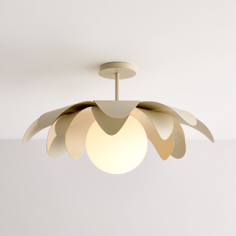Inspired by a graceful palm-tree canopy, our Palm flush mount light brings a breezy touch of the tropics indoors. Powdercoated metal layers curve like laid-back fronds, finished in a soft, calming hue that instantly freshens the room. Beneath it all, a frosted acrylic globe acts like sunlight filtering through leaves to add a warm glow every time the light switches on.