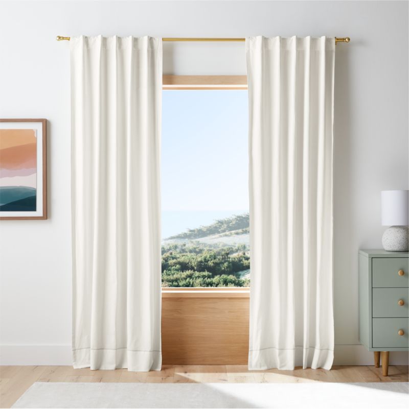 Make falling and staying asleep easier with our Pampas Ivory Blackout Curtain Panels. Featuring a delicate embroidery stitch at the hem, the curtains are made of a crisp cotton-linen blend with a natural slub texture (and a blackout panel to keep the room dark and cozy). Hang these curtains from the back tabs for an elegant pleated style, or use the rod pocket to create a more laid-back, gathered look.