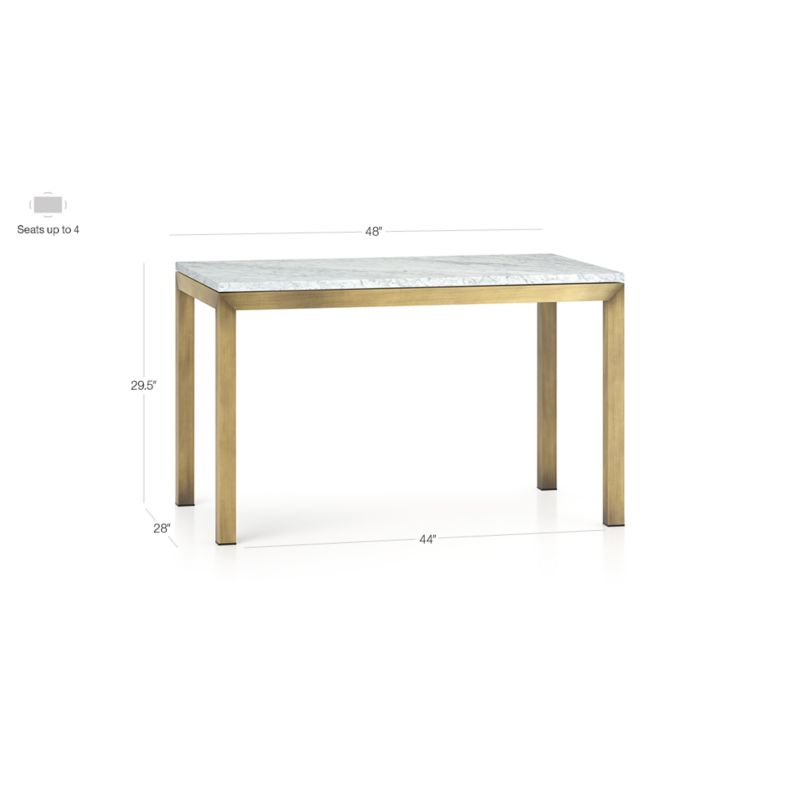 Parsons White Marble Top/ Brass Base 48x28 Dining Table