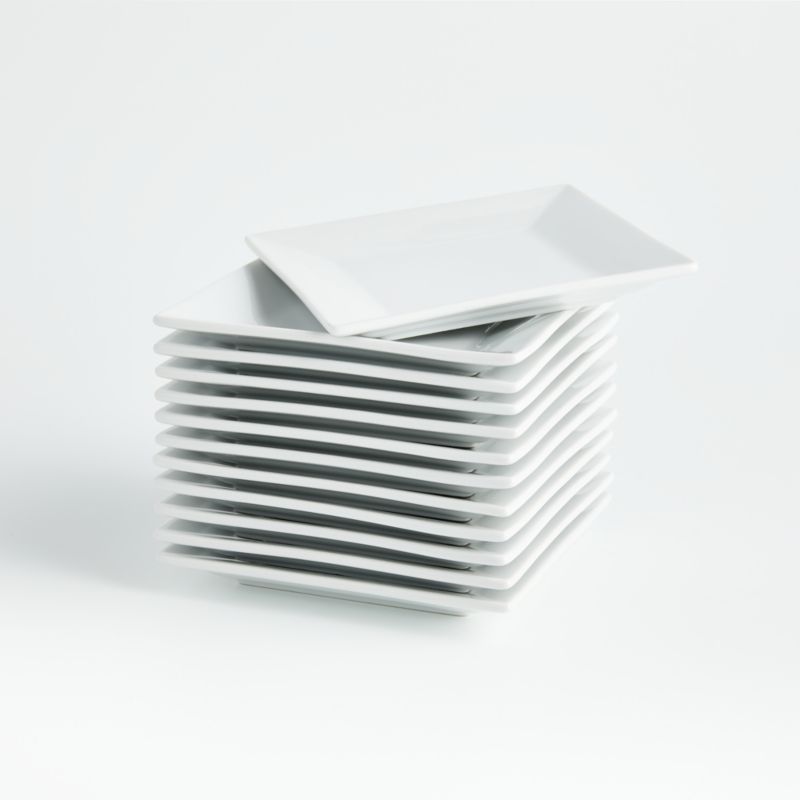 Our boxed set of square white porcelain appetizer plates delivers when unexpected guests drop in, serving an extra 12 at a moment's notice. Simply styled plates mix with other dinnerware and serving pieces and are packaged in a stylish storage box.