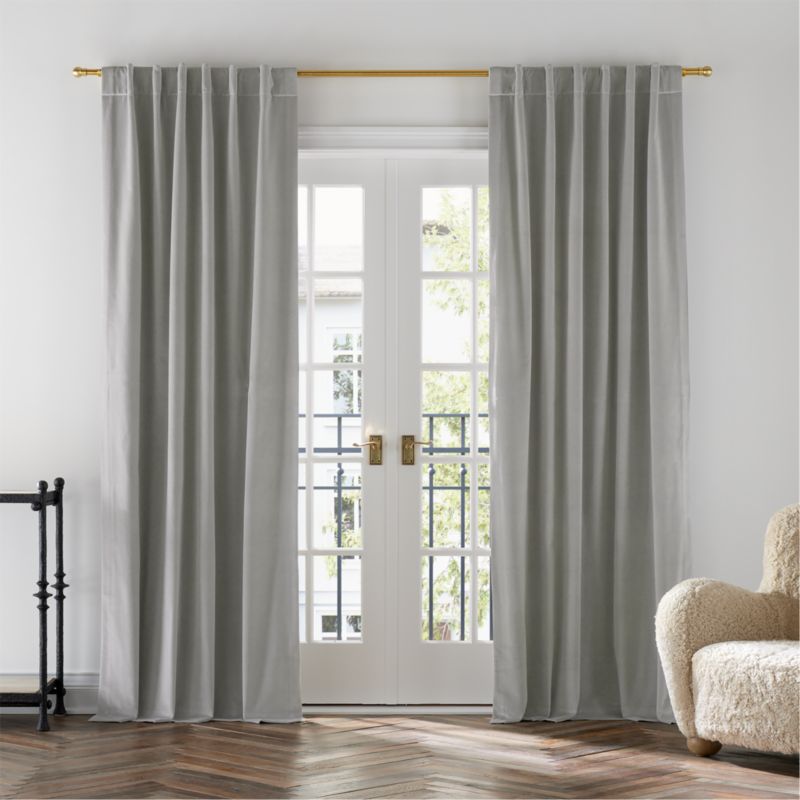 Pebble Grey Cotton Velvet Window Curtain Panel with Lining 48"x84"