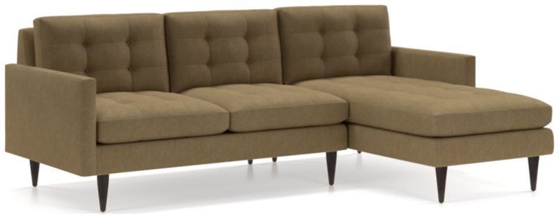 Now a Crate and Barrel classic, its pure 1960s aesthetic is scaled deep so you can sit firm and upright, but also slouch back in comfort. Well-suited to make a great impression, the menswear-inspired fabric tailors Petrie's sleek, boxy cushions and slim track arms with heathered color and soft texture. Here, we've paired the left arm loveseat and right arm chaise; you might also choose to add companion pieces from the Petrie Sectional Collection. The Petrie 2-Piece Right Arm Chaise Midcentury Sectional Sofa is a Crate and Barrel exclusive.