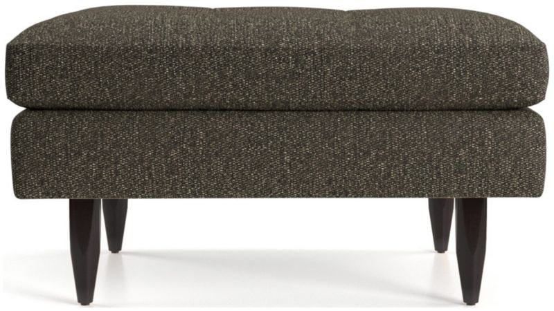 Now a Crate and Barrel classic, its pure 1960s aesthetic looks sharp with sleek, boxy cushions and slim track arms upholsterd in menswear-inspired fabric with heathered color and soft texture. Petrie Midcentury Ottoman is a Crate and Barrel exclusive.