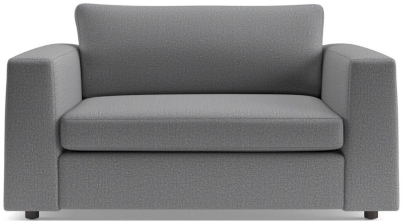 The fold-out mattress features supportive innerspring system and double-locking headrest for lounging, reading or TV watching. An anti-tilt features keeps the mattress unit grounded and stable. The Peyton Twin Sleeper Sofa is a Crate and Barrel exclusive.