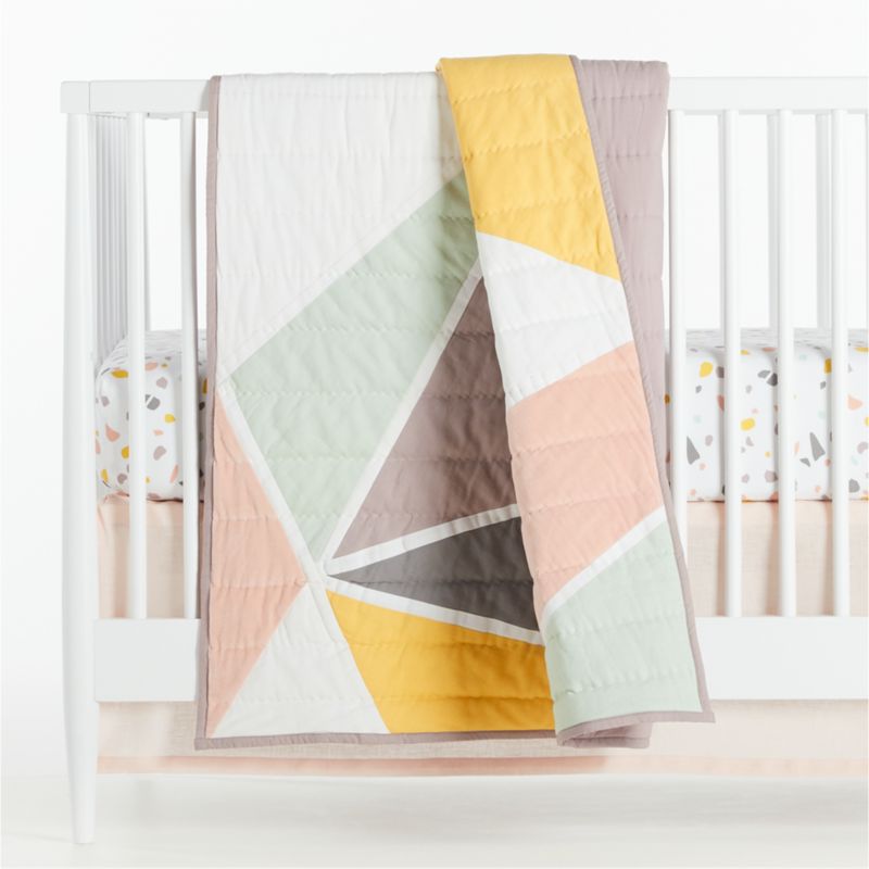 | | Crib quilt has pieced, geometric design with quilted details |
