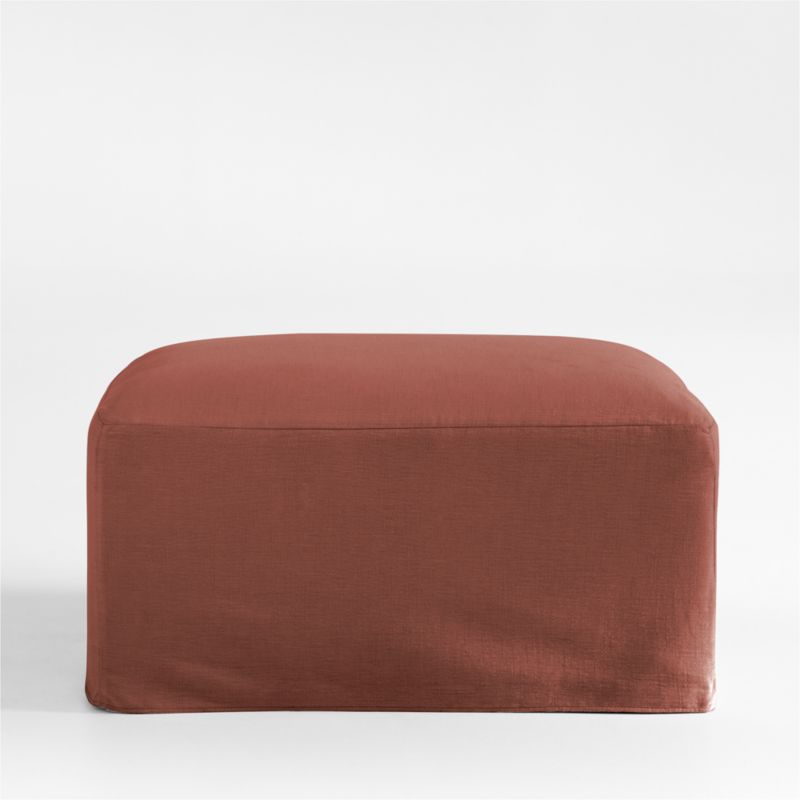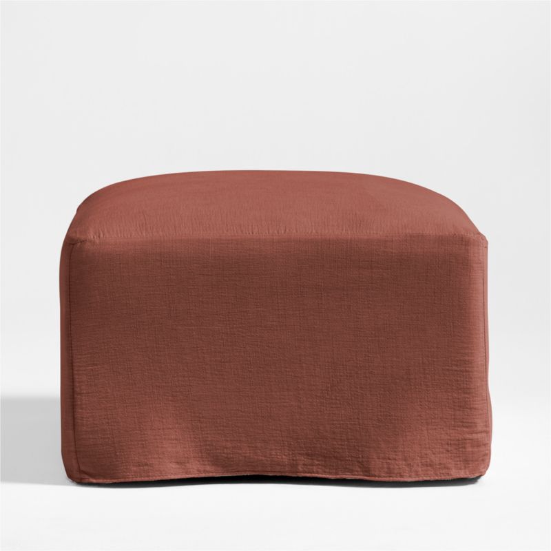 Put your feet up—you might be here awhile. Our Piper Slipcovered Nursery Ottoman features a generously sized, supportive surface for relaxing during marathon feeding or reading sessions. Its warm rust slipcover is made of a gauzy cotton-linen blend that has a breezy sensibility and pairs perfectly with our Piper Glider.
