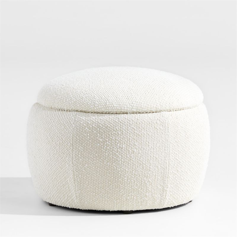 Beyond those charming good looks and versatile functionality (hellooo, foot rest and extra seat), our Pollie storage ottoman has a hidden talent. Well, it has hidden storage. The top lifts off to reveal a roomy interior for quickly stashing toys, blankies and books—so any impromptu guests will be none the wiser. Upholstered with snow-white velvet, our industrious little ottoman works even harder when paired with the coordinating Pollie rocking chair, creating the sweetest spot for even sweeter moments with your littles.