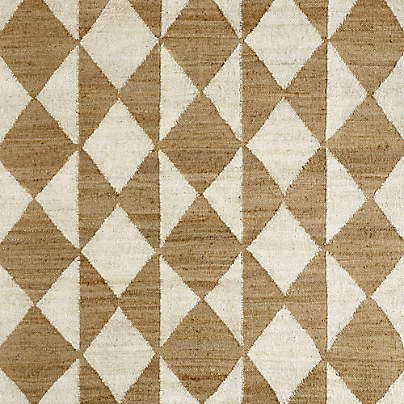 Gingham goes modern with an oversized scale and durable performance fibers. Fooling the eye with the classic look of jute rope, this graphic white-and-tan rug is soft underfoot yet can weather the elements. Skilled artisans weave each one by hand, creating a plaid on the diagonal in a chunky basket-inspired weave. This indoor/outdoor flatweave rug delights in an entryway, on a patio or in a kitchen.