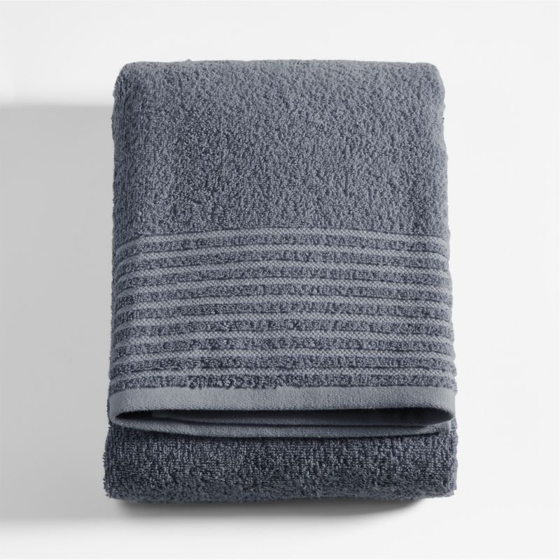 Classic toweling gets a sustainable upgrade. Organic cotton and REFIBRA threads weave a stony blue-grey bath towel. Extravagant ribbing finishes the towel with a modern, linear look that's a fresh take on traditional terry cloth styling. For a coordinated bathroom, pair the organic cotton bath towel with our other pebble blue towels in this exclusive collection.