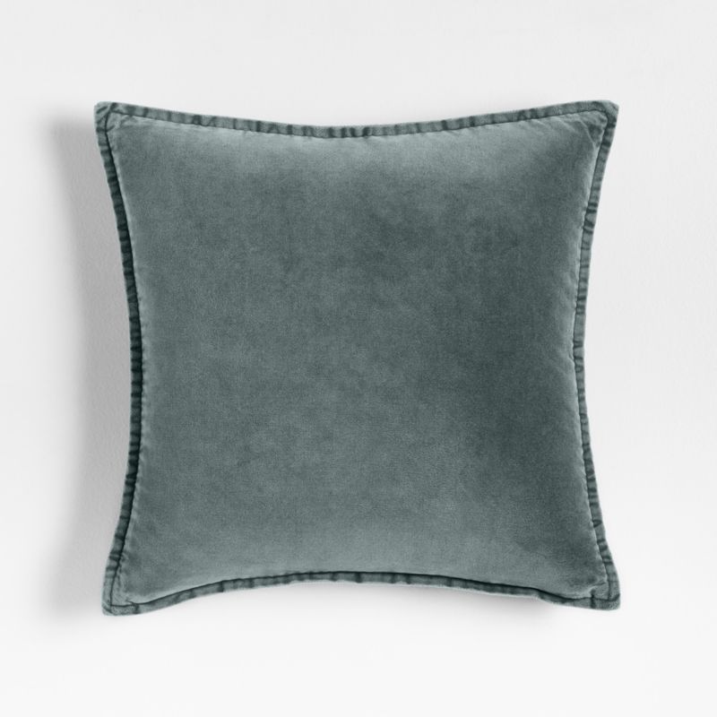 Elevated yet low-key, refined but relaxed. Our exclusive pillow cover collection reimagines velvet for everyday luxury-casual, comfortable and chic. The washed finish has a modern matte look, while the dyeing process creates subtle variations in the solid muted turquoise hue. Softly finished with flange tailoring, the teal organic cotton pillow looks right year-round tossed on your sofa, armchair or bed. Our exclusive square throw pillow includes your choice of a plush feather-down or lofty down-alternative insert.