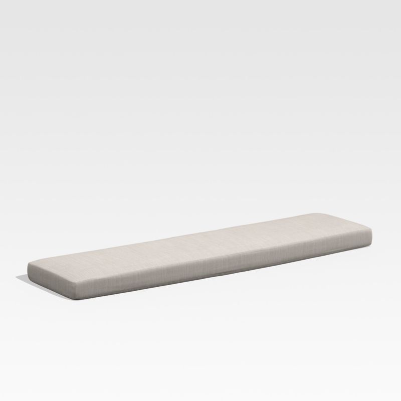 Add plush comfort and modern style to our Walker dining bench with a boxy seat cushion. Covered in weather-resistant Sunbrella fabric, the cushion is neatly tailored with a zipper on the cushion. The Walker bench cushion is a Crate & Barrel exclusive.