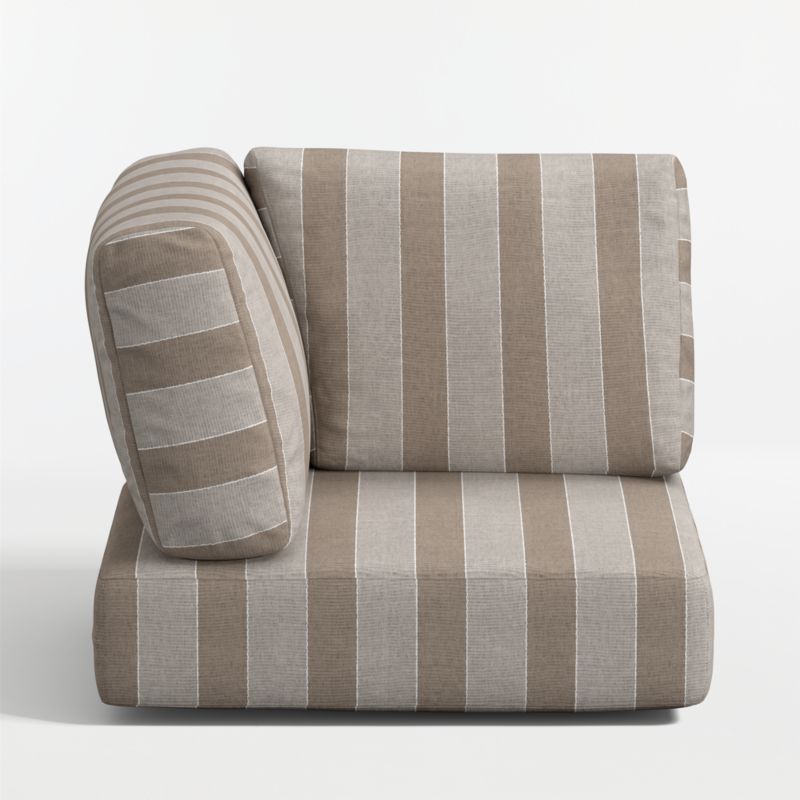 Add plush comfort and modern style to your Walker sectional corner with boxy seat and back cushions. Covered in weather-resistant Sunbrella fabric, the cushions are neatly tailored with zippers that help to ventilate and facilitate drying. The Walker outdoor sectional corner cushions are exclusive to Crate & Barrel.