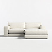 Years in the making, we pulled in customer-favorite design elements to create our Retreat sectional, a plush new hangout spot with a clean, modern look. The combination of right-arm sofa and left-arm chaise has soft-yet-supportive seat cushions and lumbar pillows that remove for a deeper, more loungey sit. Extra-wide arms provide a spot to park a book, tablet or bowl of popcorn, and T-shaped back cushions snuggle in nicely to keep the look clean and current. Textural and forgiving, the upholstery fabric we love is Serene—a beach-cleanable, family-friendly boucle with a sculpted weave that reads timeless and contemporary.