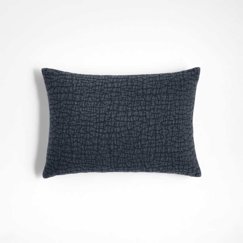 Jacquard-woven, washed and ruched, this pillow cover accents a sofa, armchair or bed with intriguing texture in a subtle tonal palette of deep blues. The ruching creates an unpredictable pattern of organic forms for a cover that layers depth and interest onto our navy bedding or our other throw pillows in the same hue. Fill the organic cotton lumbar pillow cover with a plush feather-down or lofty down-alternative insert sold separately.