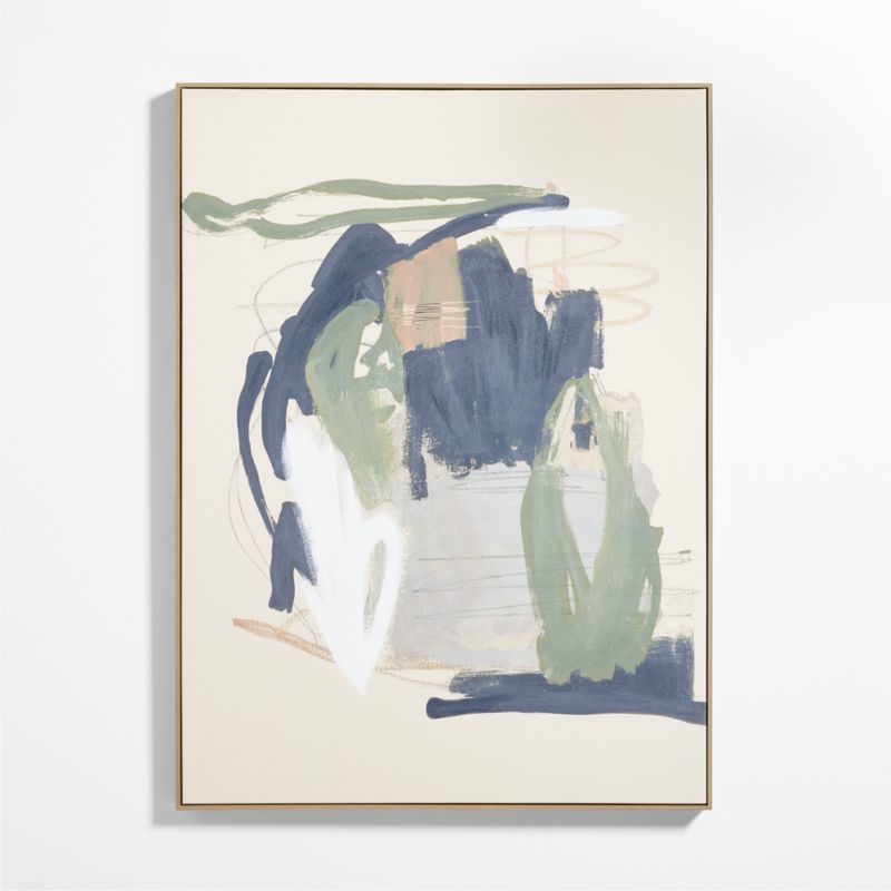 Soft in color yet bold in execution, this boldly brushed work by April Sanders makes a compelling visual statement. Our giclée reproduction prints the grey, white, grey-blue and sage green composition on unprimed canvas to allow the pigments to absorb into the fabric for an authentic look. Textural enhancements mimic the dimension of the original acrylic painting by creating a sense of depth. Presented in a grey-finished floater frame, the print hangs vertically or horizontally to suit your space.