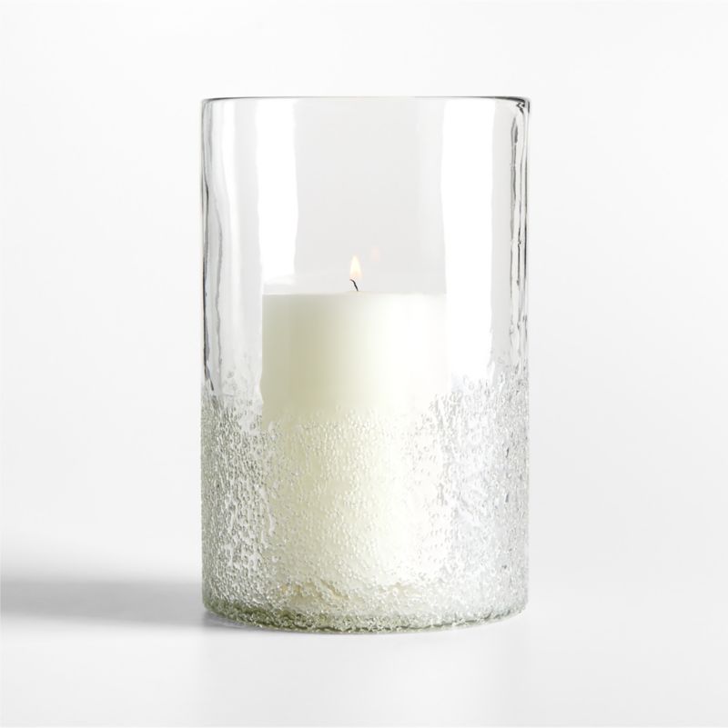 We've given the classic glass hurricane a modern-organic update with plenty of texture. Made with hand-blown glass, the candleholder is molded into a clear cylinder with organic edges and seeded textured on the lower portion. Timeless and versatile—doubling as a vase—our large candle holder layers effortlessly into seasonal decor and everyday candlelight displays.