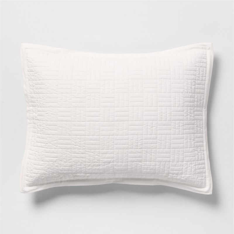 For an ultra-sophisticated yet supersoft sleep, our new Serene collection makes the bed with silky organic cotton sateen. A basketweave stitch offers a modern take on quilting, giving this pillow sham a clean, linear look that's still plenty cozy. The lustrous washed fabric, lightweight fill and tranquil hue make the pillow sham ideal for year-round use, especially paired with our other luxurious Serene bedding.