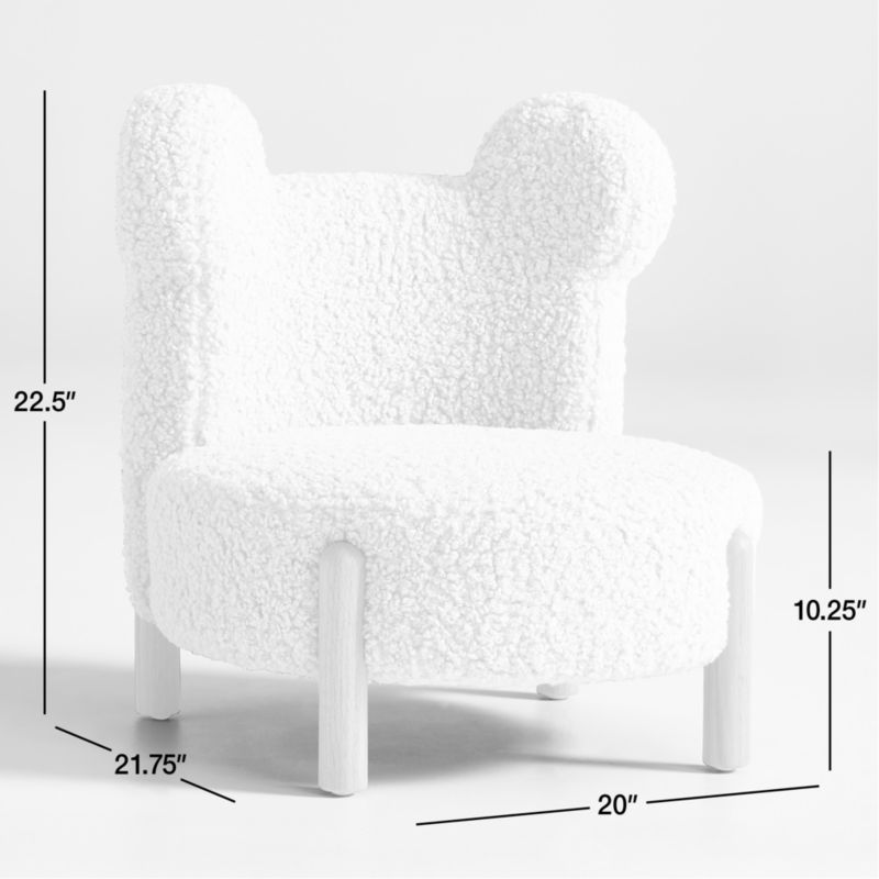 Ultra-cozy and perfectly sized for little ones, our supersoft sherpa bear chair brings whimsy and charm to any setting. The playful bear silhouette features rounded ears and a curved back that gives kids a comfy place to curl up. Rich, honey-toned oak legs add support and style. This low-slung chair is a delightful addition to playrooms and nurseries.