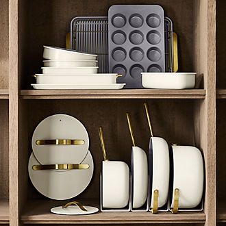 Anyone who loves to cook knows that having the right pots and pans is essential, but with so many good cookware brands on the market, it can be hard to know which one is right for you. One of the easiest ways to decide is by assessing your own enjoyment of cooking. If you tend to see meal prep as a simple necessity, the top cookware brands for you are those that prioritize durability and ease of use. Consider All-Clad cookware and Calphalon pots and pans for workhorse options that heat quickly and clean up easily. A Cuisinart cookware set is also a smart pick for students heading off to college or engaged couples creating a gift registry. Those who enjoy making food, on the other hand, might want to consider purchasing a few pieces from luxury high-end cookware brands to elevate their craft. Copper pots and pans from Ruffoni or upscale Scandinavian-designed SCANPAN cookware combine sleek looks with professional quality to take your hobby to the next level. Got an eye for design? Show it off with colorful kitchenware. Customer favorites such as Staub, Milo by Kana, Caraway and Le Creuset are among the top kitchen brands for adding a vibrant pop to your stovetop.