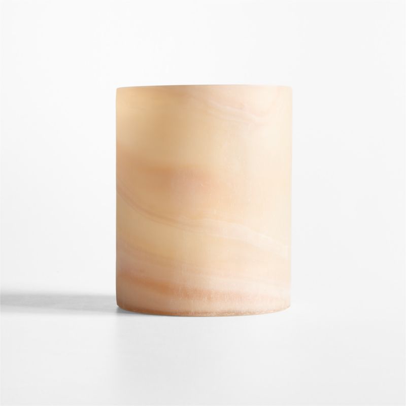 Inspired by the tumbled sea glass found on the coast, our serene Sydney collection brings the beauty of the beach home. Sand-hued glass subtly swirled with pink, white and mauve shapes the hurricane. A white marbled finish applied by hand gives depth and fascination to the clean-curved cylinder. Our exclusive Sydney hurricane instantly adds coastal cool to your decor, especially with a candle glowing within. Due to its handcrafted nature and unique finish, each candle holder is one of a kind.
