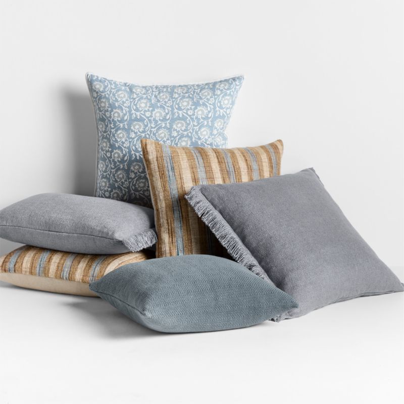 Casual Textured Fringe 23"x23" Smoke Blue Throw Pillow Cover