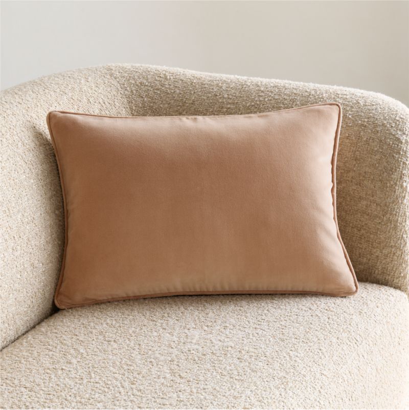 Soft Focus Organic Cotton Velvet 22"x15" Warm Rose Throw Pillow with Down-Alternative Insert by Laura Harrier and Tiffany Howell