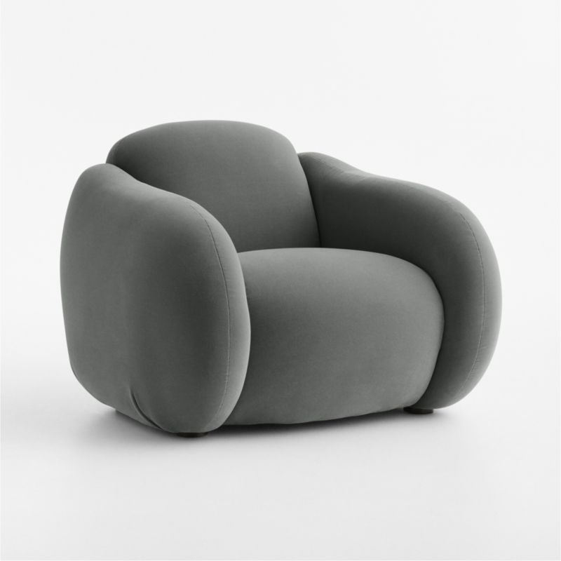 With nary a hard edge in sight, Soma snuggles with soft contours and bold shapes inspired by rounded forms found in nature. Offering medium-firm support along with cozy comfort, the chair indulges with generously padded cushions and extravagantly scaled proportions. Seamless upholstery in a velvety faux mohair enhances the chair's organic silhouette and sumptuous nature.